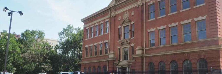 That site, just north of the Evans School, is currently a parking lot. Across the street is the Denver Art Museum.
