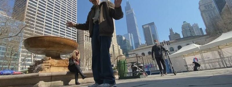 “It was a joke from, I think, probably Betty Davis, she says, ‘Old age is not for sissies,’” said Holzman, sitting on a wooden chair in the shadow of a large umbrella spread in Bryant Park.