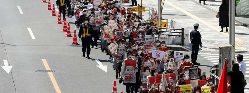 The march came as tens of thousands took to the streets of Myanmar on Sunday in a ninth straight day of protests. Several demonstrations have been held in Japan since the Feb. 1 coup, mainly by Myanmar residents of Japan.